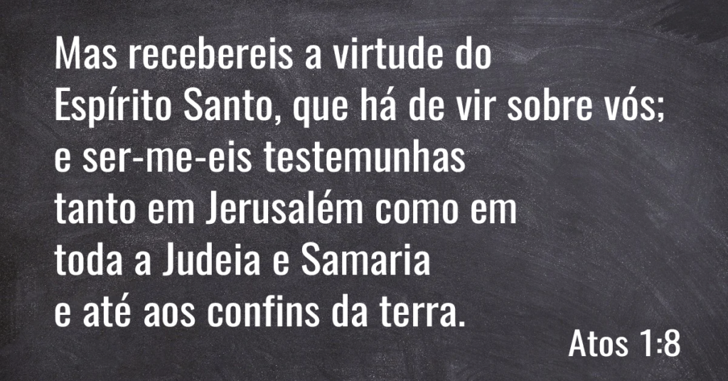 O versículo 8 é um dos textos mais importantes de todo o Novo Testamento, porque marca o início da igreja como conhecemos hoje. A promessa do Espírito Santo não era apenas um consolo emocional para os discípulos tristes pela partida de Cristo; era o poder necessário para continuar a obra do Reino. Sem o Espírito, eles não teriam ousadia, discernimento, sabedoria, nem coragem para enfrentar perseguições, prisões e até a morte.